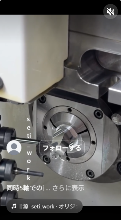 さらに㈱セティ様がAutodesk FusionとESPRITを使って自動旋盤で同時5軸加工を行いました。加工サンプルは現地でご覧ください。加工動画は右写真から。